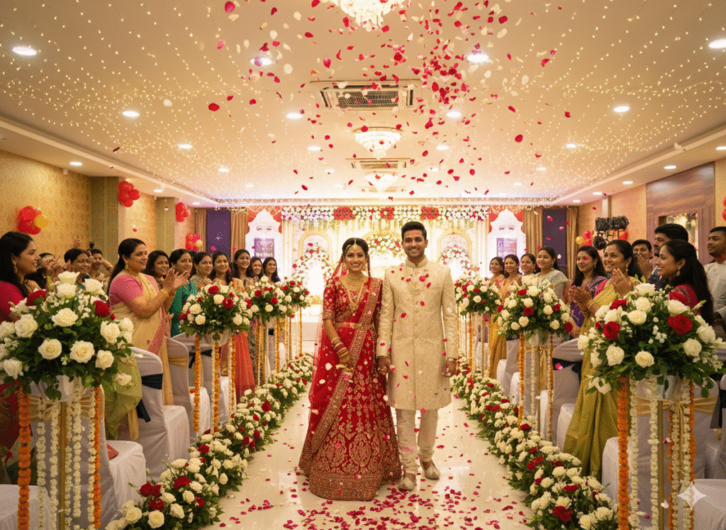 - Customizable Decor: Neutral, elegant walls provide a luxurious canvas, ready to be transformed by custom florals and backdrops, securing its place among the best banquet halls in Patna.