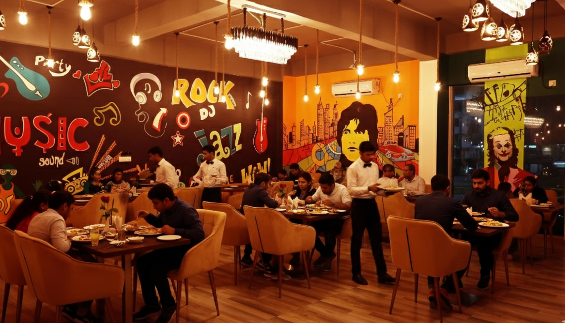 Step into the vibrant and eclectic world of Golden Grill Restaurant at Hotel Golden Palm, where culinary artistry meets a dynamic ambiance. This image perfectly captures the lively spirit and modern charm that make us the ultimate destination for those searching for the best restaurant in Patna for a memorable meal.