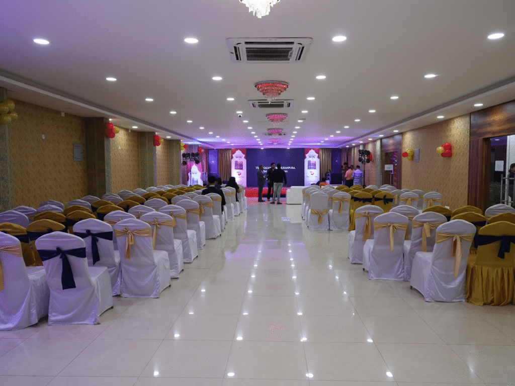 Welcome to the Gold Hall at Hotel Golden Palm—the pinnacle of event luxury and the ideal choice for those seeking the ultimate banquet hall in Patna. Named to reflect the standard of excellence we uphold, the Gold Hall is where every occasion, from high-level corporate meetings to magnificent wedding receptions, is transformed into a flawless, golden memory.